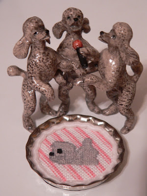 I have been entertaining myself with yet another poodle bottle cap magnet. Yes, I admit, I am addicted to these.